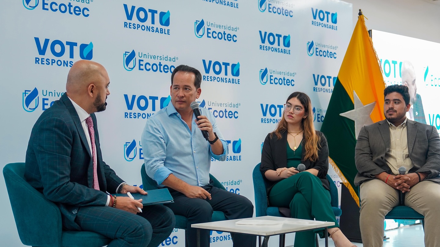 Con el propósito de formar ciudadanos críticos y comprometidos, ECOTEC ha dado inicio a la jornada académica Voto Responsable, un espacio para el diálogo y la reflexión activa sobre el futuro de Ecuador. A través de encuentros con los candidatos presidenciales Andrea González Nader, Carlos Rabascall, Juan Iván Cueva, Francesco Tabacchi y Henry Cucalón, nuestros estudiantes están conociendo diversas posturas y desarrollando una visión crítica y consciente. En ECOTEC, reafirmamos nuestro compromiso con la democracia y la formación de líderes preparados para enfrentar los desafíos de mañana.